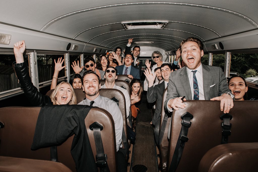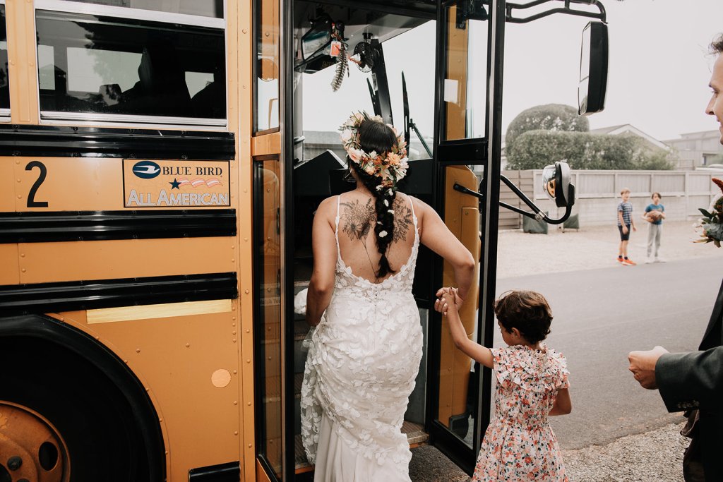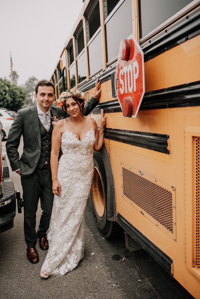 As the bride and groom stole away for some private portraits, a classic school bus awaited them for the next part of their adventure – To the Stinson Beach Community Center! Where friends and fam and snacks galore await 🙂