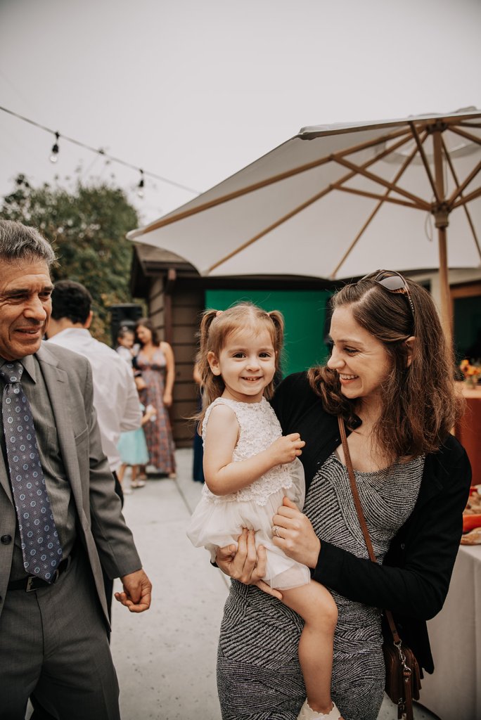 The couple finally got to celebrate their marriage with their whole crew at the Stinson Beach Community Center, just across the street from the coastline.