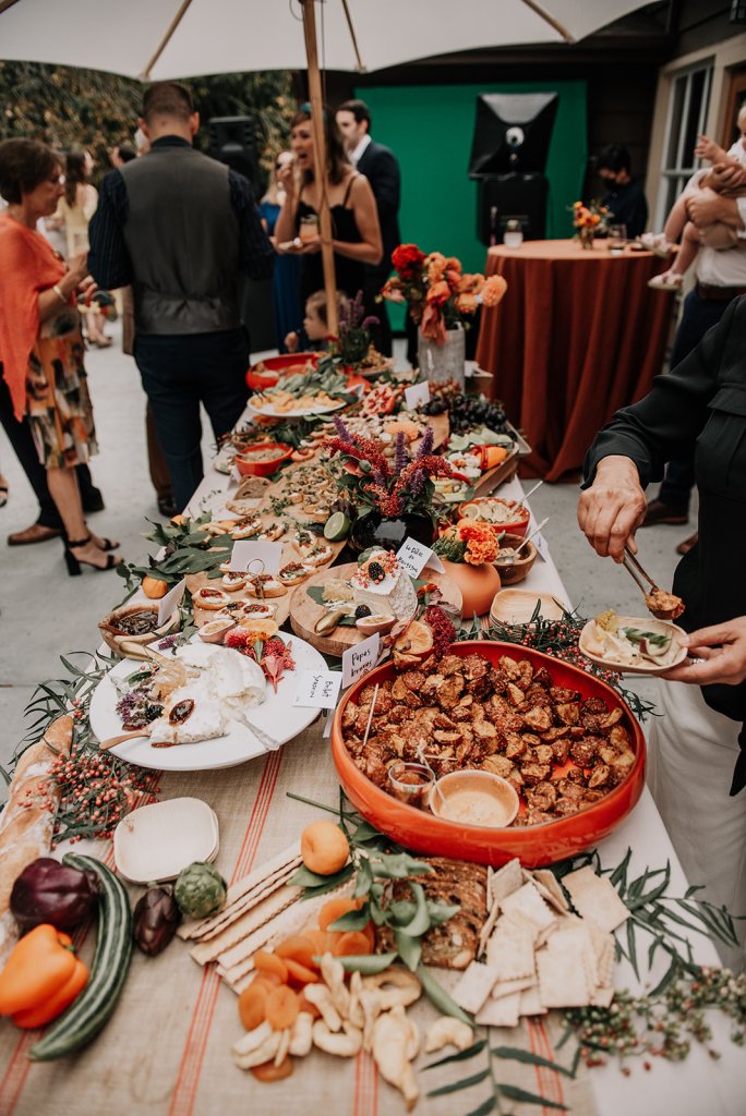 Annie Green of Small Blue Planet Events made everything run smoothly, Port Side Platters created a beautiful grazing board and appetizers, Davey Jones Deli provided the most DELICIOUS paella this side of the Mississippi for both veggie and meat eaters alike, Gorgeous and Green made STUNNING bouquets and an ethereal bridal flower crown that I can’t stop talking about, and Bright Event Rentals provided comfortable spots for out tush’s and dinner set up that brought the glam.